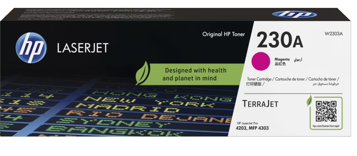 Originani magenta toner W2303A 230A, kapaciteta 1800 strana sa 5% popunjenosti.